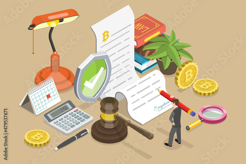 Иллюстрация векторной концепции закона о предотвращении загрязнения. Юридические символы Юридическая книга с промышленными заводскими трубами, весами правосудия, судейским молотком. Изометрическая композиция для веб-баннера, страницы веб-сайта и т.д.