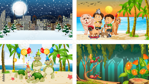 Векторная иллюстрация концепции вечеринки у бассейна. Летние каникулы у бассейна. Счастливые люди плавают в бассейне. Набор рисованных партийных плакатов для голосования.