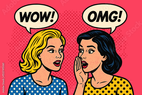 Векторная иллюстрация ретро-комиксов в стиле поп-арт. Две женщины разговаривают друг с другом.