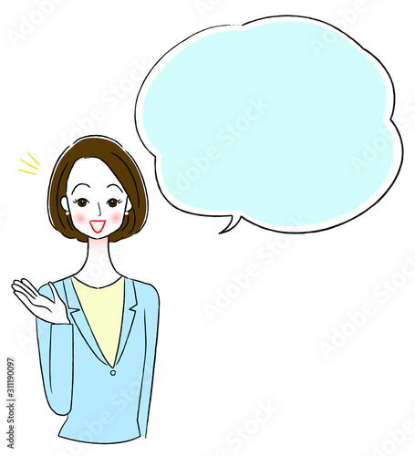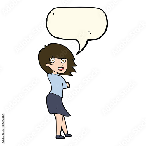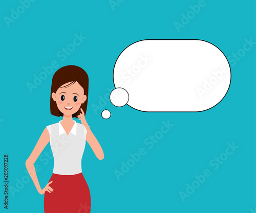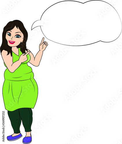 Женщина в стиле поп-арт в стиле ретро указывает рукой на знак с речевым пузырем. Комическая рисованная векторная иллюстрация дизайна.