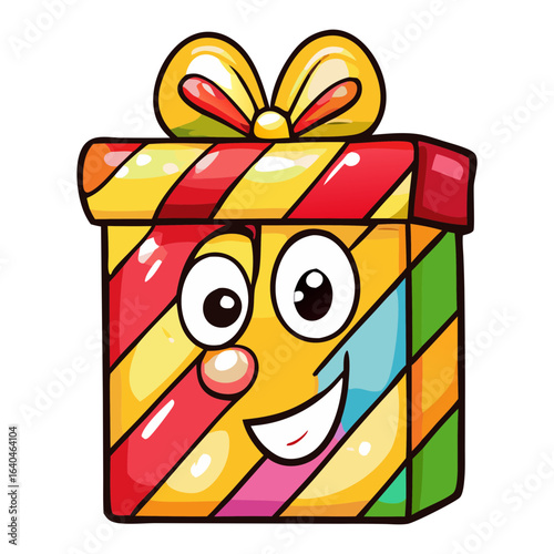 Мультяшный векторный персонаж из коробки для попкорна. Забавный изолированный значок коробки для попкорна. Смайлик упаковки закусок с милой улыбкой на белом фоне. Иллюстрация упаковки быстрого питания в стиле каваи