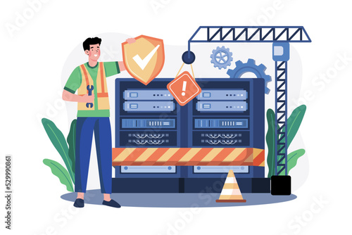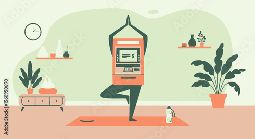 Векторная иллюстрация зала ожидания кинотеатра и кафе с продавщицей. Элемент концептуального дизайна попкорна в плоском стиле.