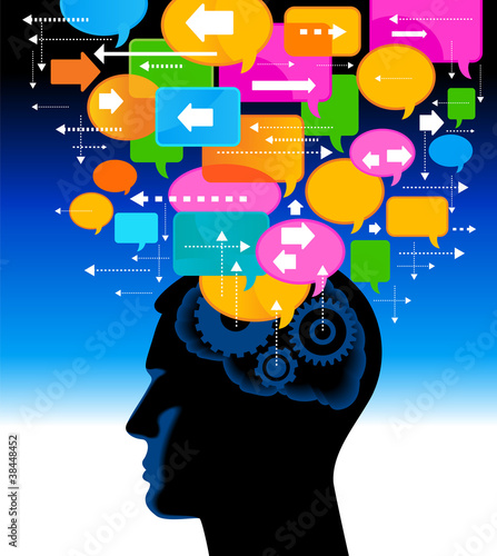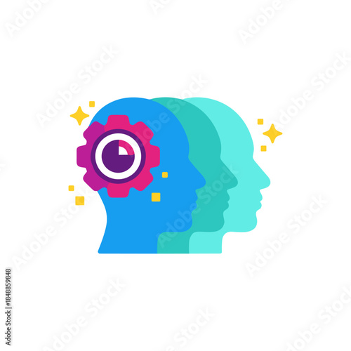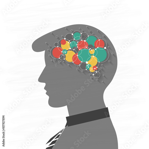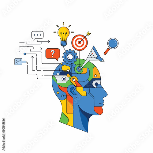 Векторная иллюстрация позитивного или негативного мышления. Человеческая голова в профиль с дождливым облаком и солнечной радужной погодой внутри головы. Искусство вырезания из бумаги для психического здоровья, осознанности и управления стрессом