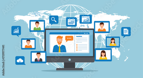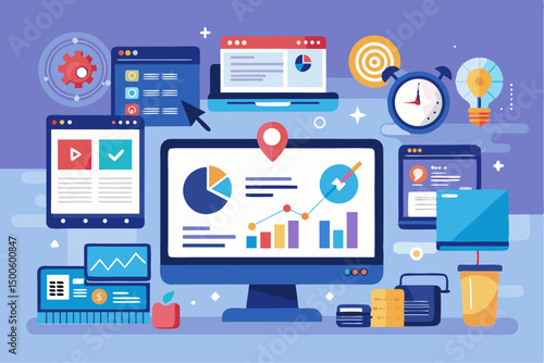 Вектор умной птицефабрики. Иллюстрация автоматизированной сельскохозяйственной системы в действии. Плоская человеческая рука, держащая смартфон в руке для анализа данных и кормления цыпленка. Технология автоматизации и внедрения