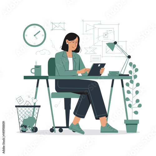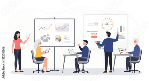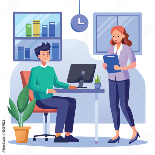 Векторная плоская иллюстрация концепции предвыборной кампании. Кандидат-мужчина, представляющий программу своей будущей деятельности, выступая с трибуны перед видеокамерой. Предвыборная речь, встреча с избирателями.
