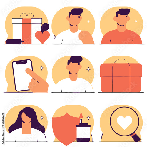 Сцена беременности со счастливой беременной женщиной на приеме у гинеколога, проходящей ультразвуковой скрининг, обнимающейся с любящим мужем, занимающейся йогой и гимнастикой на растяжку, обычная векторная иллюстрация