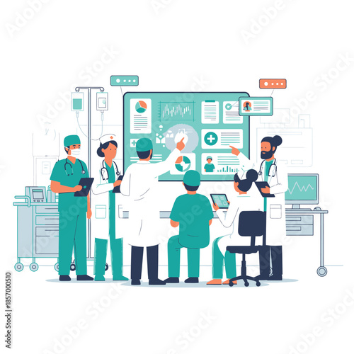 Беременная женщина, ожидающая пара, посещающая медицинскую клинику, плоская векторная иллюстрация. Обследование на беременность, родовспоможение, дородовой уход, ультразвуковое исследование.