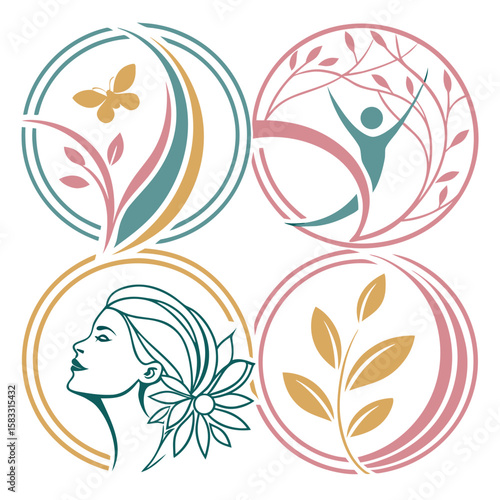 Беременная женщина с маленьким плодом, растущим внутри векторного плаката в стиле вырезки из бумаги. Мать, ожидающая ребенка. Иллюстрация женского силуэта и листьев растения. Концепция материнства или медикаментозной беременности