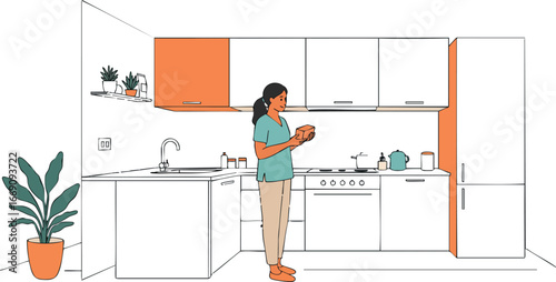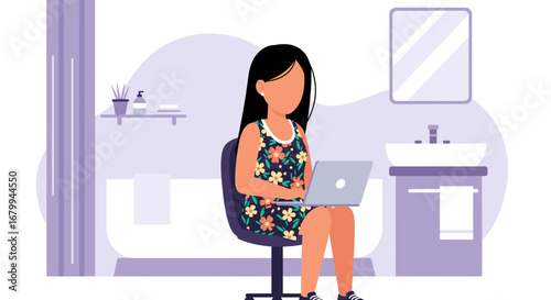 Красивая молодая женщина с идеальным телом принимает душ в домашней ванной векторной иллюстрации. Гигиена, чистота и косметические процедуры