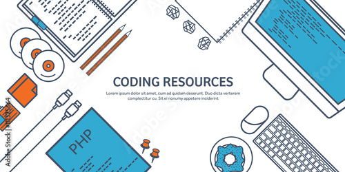 Вектор частной детективной службы. Фотоаппарат, наклейка с заметками, газетная статья, иллюстрация аналитической информации по ключам. Шаблон плаката с пустым местом для копирования.