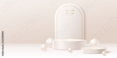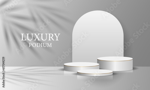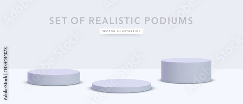 Набор макетов подиума для демонстрации товара, векторная изолированная иллюстрация. Реалистичная белая пустая сцена, платформа в форме круга для выставки, презентации, рекламы.