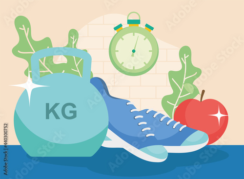Иллюстрация дизайна профессионального бокса в векторном плоском стиле. Боксерская груша, перчатки, пояс, спортивная сумка, бутылка с водой, секундомер, каппы. Боксерское оборудование и аксессуары для веб-баннера, страницы веб-сайта.