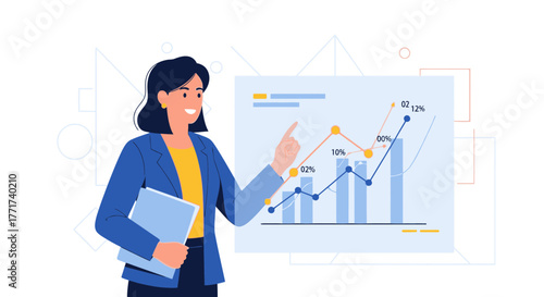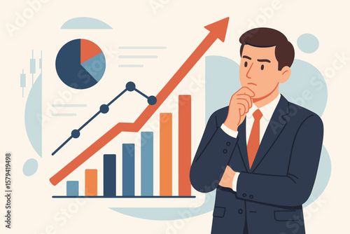 Деловой человек, стрелки вверх, плоская векторная иллюстрация. Профессиональный карьерный рост, успех в бизнесе, лидерство.