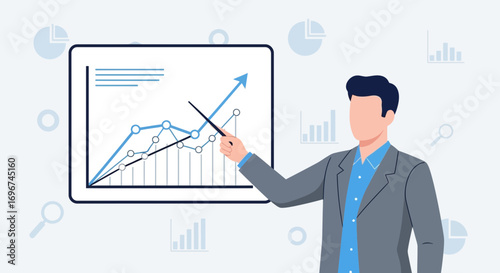 Деловой человек, стрелки вверх, плоская векторная иллюстрация. Профессиональный карьерный рост, успех в бизнесе, лидерство.