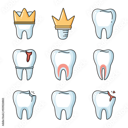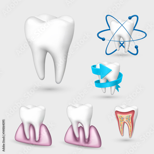 Стоматологические услуги, векторная изолированная иллюстрация. Белый блестящий здоровый зуб, лечение зубов, удаление зубов и процедуры чистки зубов. Концепция стоматологии для плаката, баннера, страницы веб-сайта и т.д.
