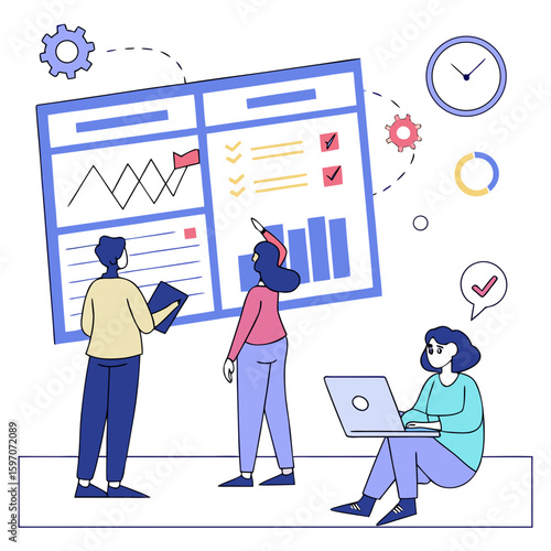Профессиональный дизайнер, представляющий подробные чертежи гардероба или тумбы, плоскую векторную иллюстрацию. Концепция дизайна мебели.
