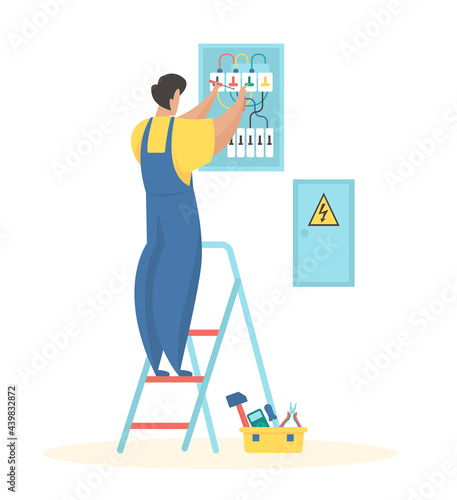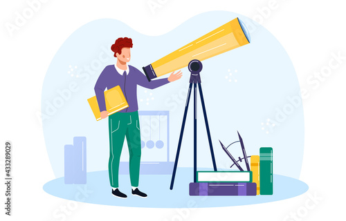 Профессиональные услуги по уборке офиса, векторная плоская иллюстрация. Персонажи мужского и женского пола, сотрудники клининговой компании, убирающие мусор, моющие окна и пол.