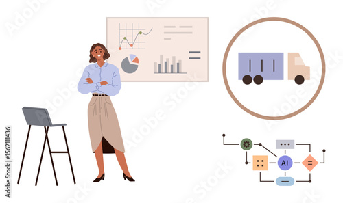 Векторная иллюстрация концепции управления проектами. Бизнес - команда работает вместе с приборной панелью данных проекта в офисе.
