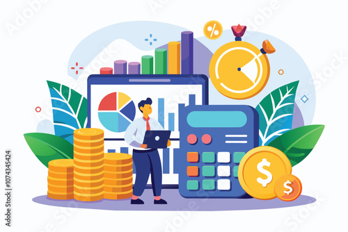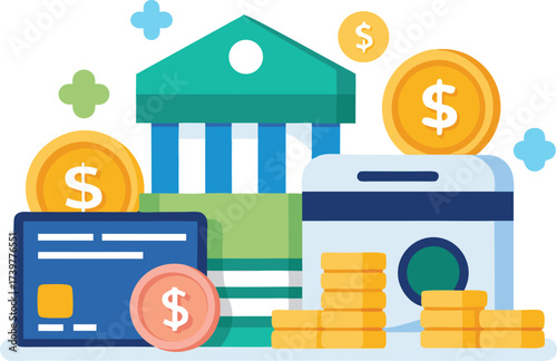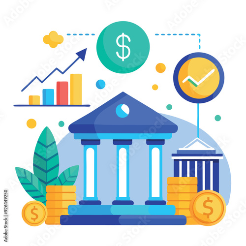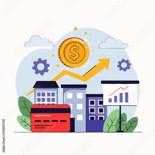 Концепция инвестирования в недвижимость. Инвестиции в недвижимость и недвижимость. Здание помещено на стопку монет. Символы доллара и элементы дизайна.