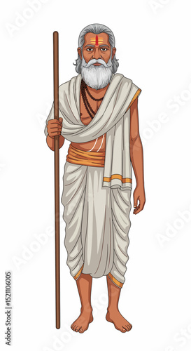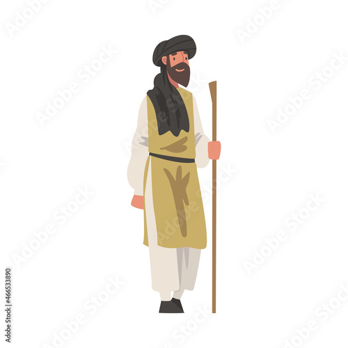 Пророк Моисей с деревянным посохом Библейский персонаж векторная иконка изолированный фон.