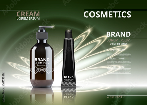 Шаблон рекламы белковых продуктов. Векторная реалистичная иллюстрация шаблона дизайна упаковки контейнера для порошка сывороточного протеина, стакана протеинового коктейля, куриного мяса, яиц и штанги для силовых тренировок.