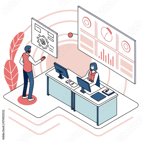 Сцена акции протеста. Полицейский бьет активиста дубинкой по голове, плоская векторная изометрическая иллюстрация. Протест против насилия.