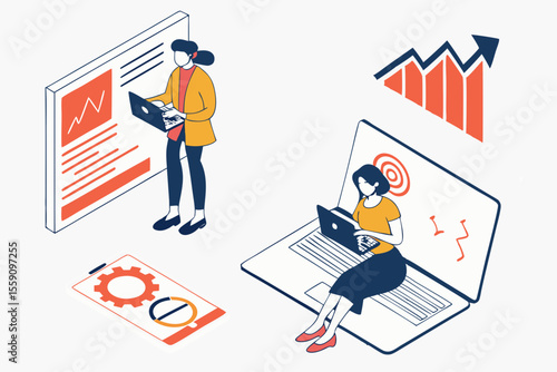 Сцена акции протеста. Полицейский бьет активиста дубинкой по голове, плоская векторная изометрическая иллюстрация. Прекратите протест против насилия.