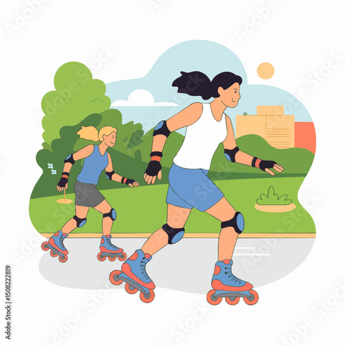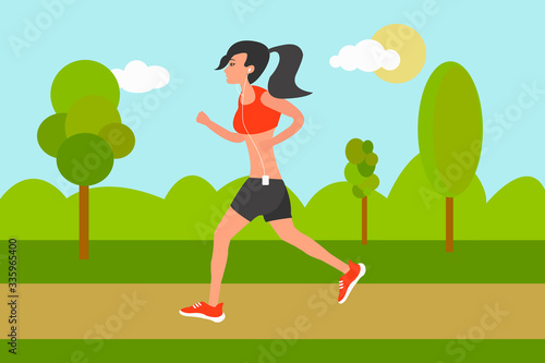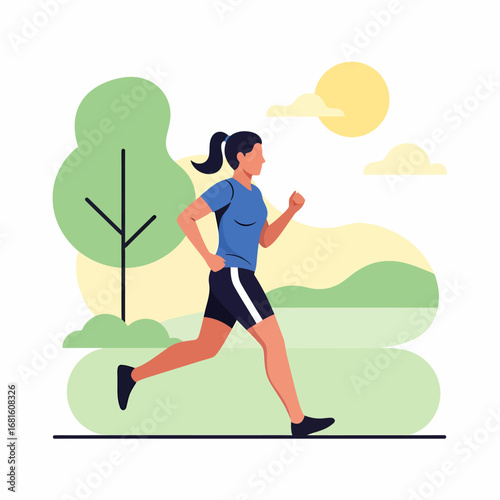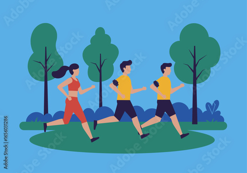 Векторная иллюстрация счастливой зрелой пары, наслаждающейся совместным времяпрепровождением. Активные пожилые мужчина и женщина бегают трусцой в парке. Предусмотренный для пожилых людей элемент концептуального дизайна в плоском стиле.