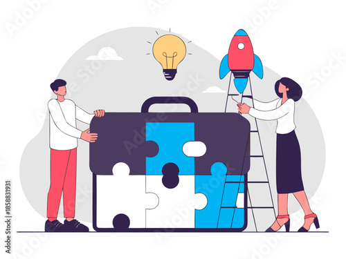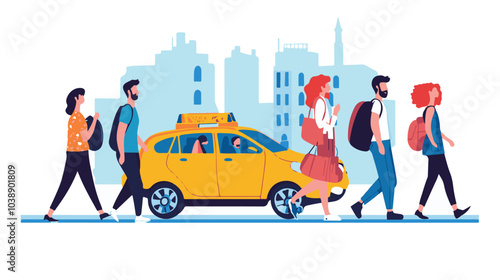 Автобусное сообщение общественного транспорта, маршрутное такси векторная концептуальная иллюстрация для веб-баннера, страницы веб-сайта и т.д. Микроавтобус с багажом на крыше, водитель с ключом, пассажиры мужского и женского пола и билет.