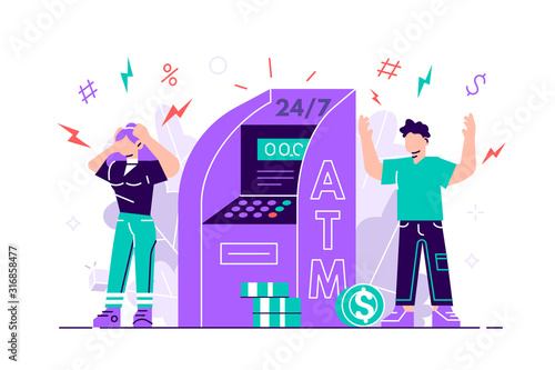Люди, использующие смартфон для считывания штрих-кодов и оплаты во время совершения покупок, векторная иллюстрация. Концепция покупки QR-кода мобильного телефона для веб-баннера, страницы веб-сайта и т.д.