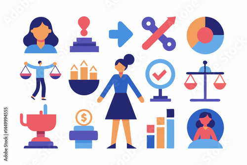 Набор гонщиков, плоская векторная изолированная иллюстрация. Водитель автомобиля, гонщик в костюме. Гоночное снаряжение и экипировка. Костюм, шлем, кепка, медаль, кубок-трофей, пьедестал почета, секундомер, спортивный автомобиль и колеса.