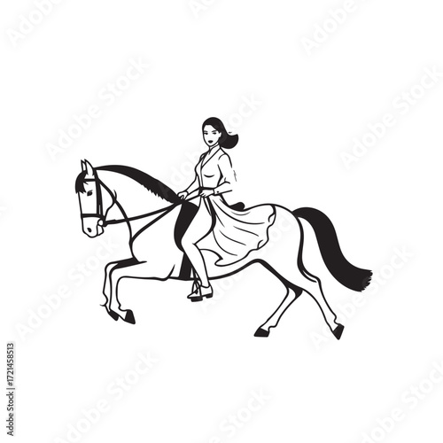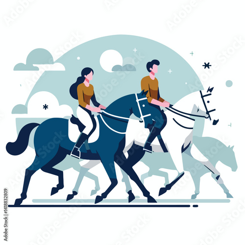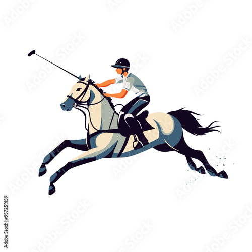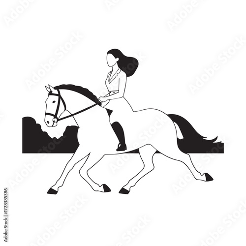 Скаковая лошадь и леди-жокей. Концепция верховой езды плоская векторная иллюстрация.
