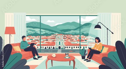 Векторная иллюстрация музыкантов в наушниках, играющих на ударной установке и синтезаторе. Работники радиостудии, музыканты, создающие контент для радиопередачи с использованием звукозаписывающего оборудования.