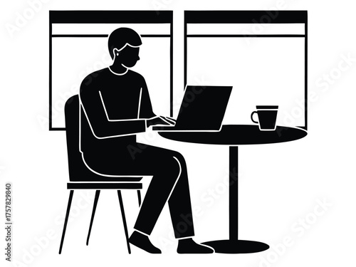 Векторная иллюстрация мужчины-диджея радио в наушниках, работающего перед микрофоном и компьютером в радиостудии. Элемент дизайна в плоском стиле Radio people, значок, выделенный на белом фоне.