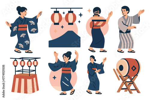 Набор радиоподкастов, векторная плоская изолированная иллюстрация. Концепция интернет-радио, записи и прослушивания подкастов с персонажами для плаката, баннера и т.д.