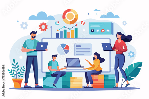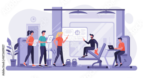 Шаблон векторного баннера типографии подкаста. Персонажи мужского и женского пола записывают и слушают подкаст. Онлайн-радио, подкастинг, радиовещание.