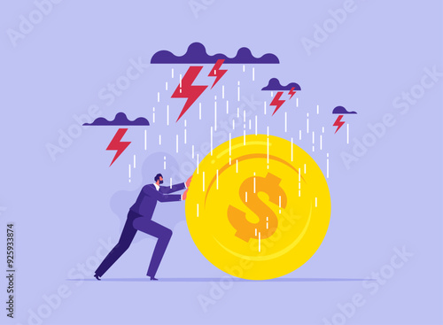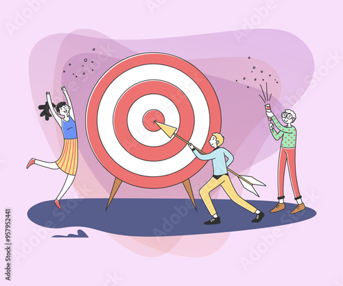 Уверенный бизнесмен, взбирающийся на гору, чтобы достичь бизнес-цели, кубок трофея на огромной цели, векторная иллюстрация дизайна в плоском стиле. Достижение цели, карьерный рост, концепция лидерства.