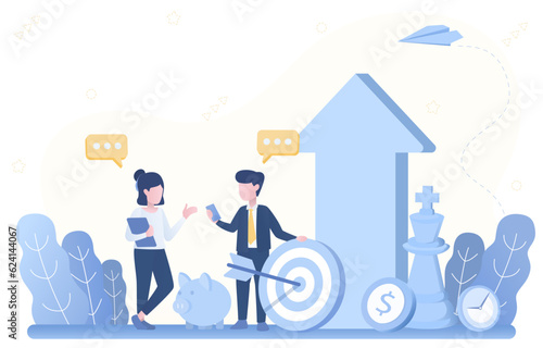 Аукцион недвижимости и торги на торгах. Участники торгов, предлагающие цены с помощью весел для ставок, сидящих и стоящих на стопке денег, плоская векторная иллюстрация. Покупка и продажа недвижимости с аукциона.