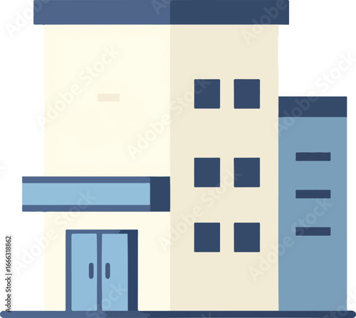Больничный коридор с закрытыми дверями на реалистичном векторном фоне. Иллюстрация коридора клиники, интерьера отделения неотложной помощи или лабораторного прохода