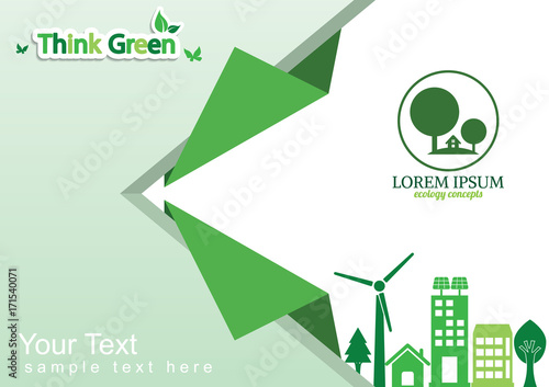 Знак переработки с элементами экологически чистого города, горная природа, векторная иллюстрация, вырезанная из бумаги. Устойчивый городской образ жизни с альтернативной энергией, зелеными парками. Символ повторного использования отходов и вторичной переработки, этикетка.