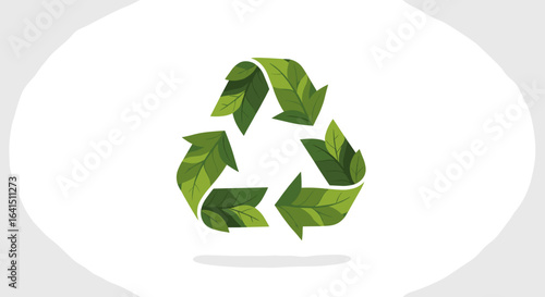 Векторный символ переработки в стиле многослойной вырезки из бумаги. Креативная композиция Recycle sign в зеленом и белом цветах.