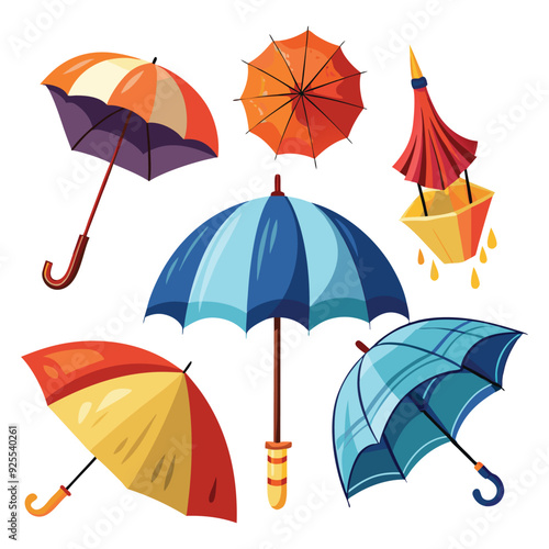 Набор значков красного зонтика. Векторная реалистичная иллюстрация сложенного и раскрытого зонтика, изолированного на белом фоне.