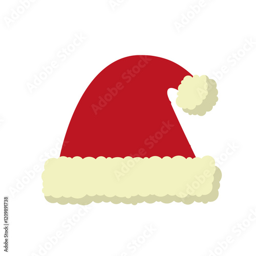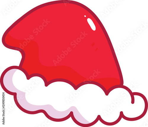 Красная шляпа для празднования Рождества и Нового года векторная иконка, изолированная на белом фоне.