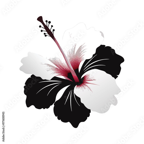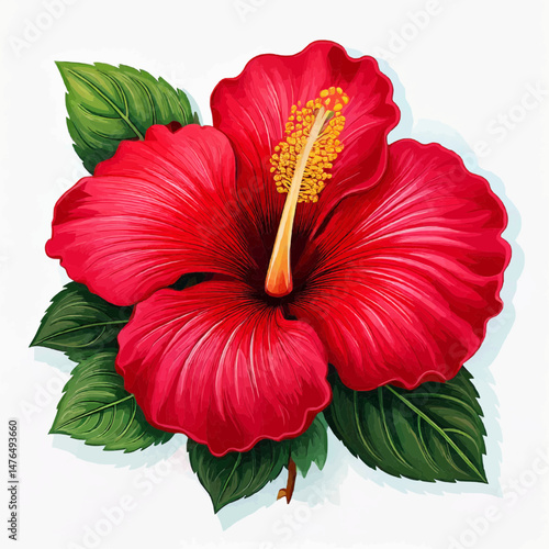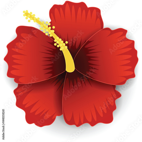 Красный гавайский цветок гибискус в векторе. Изолированная иконка с тропическими и экзотическими цветами. Цветущая плюмерия на Гавайях на белом фоне