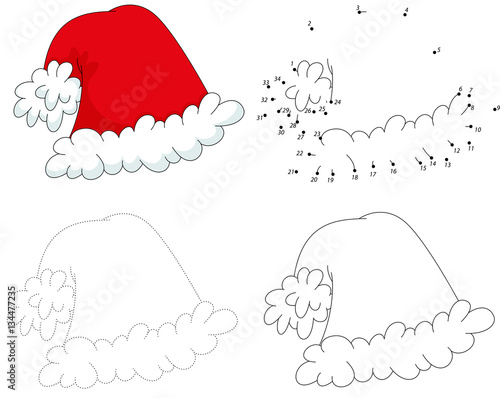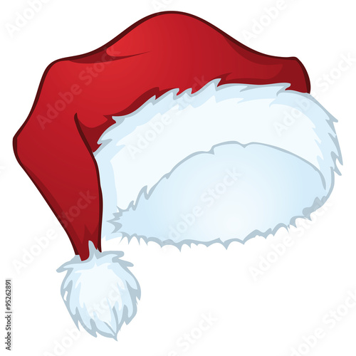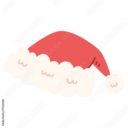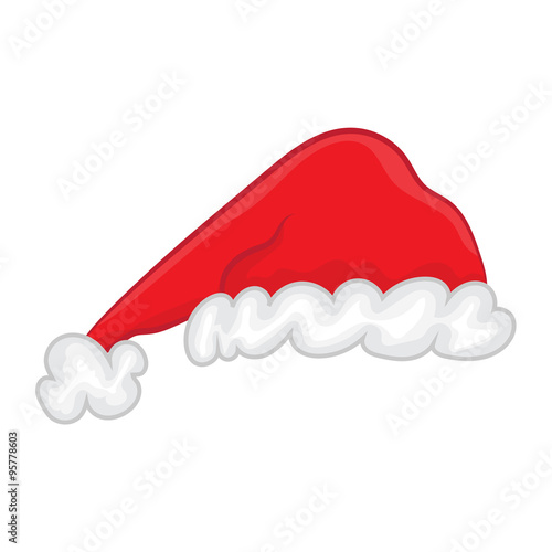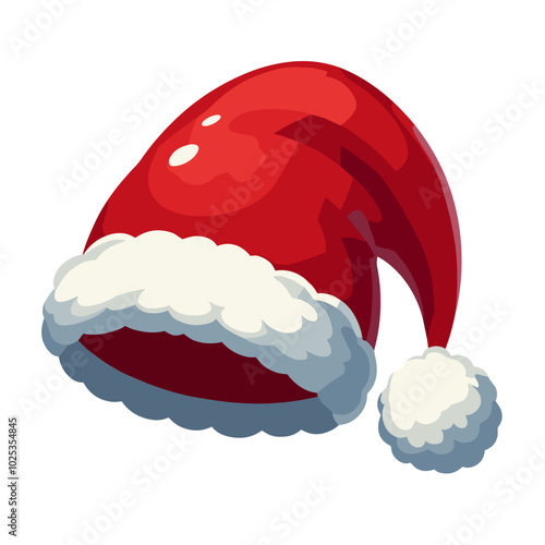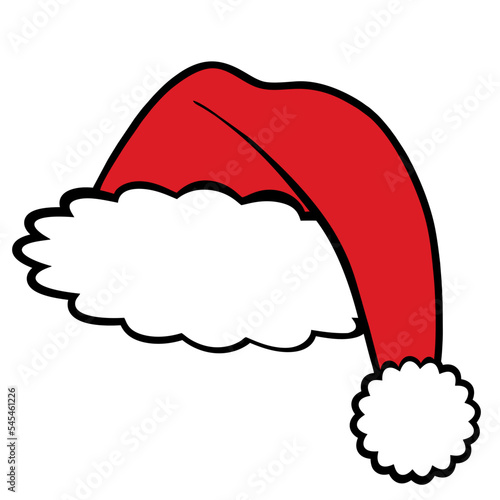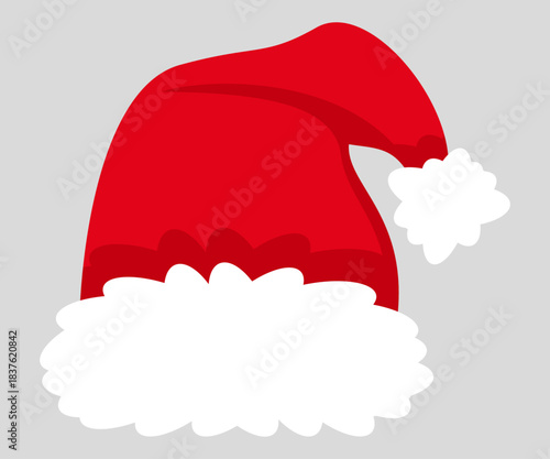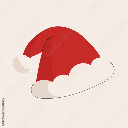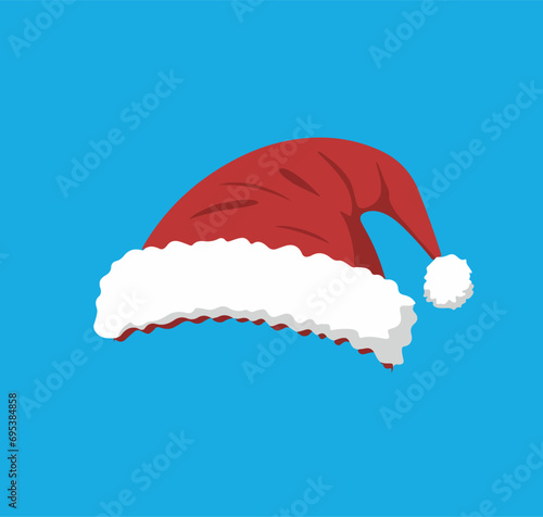 Красная шляпа Санты для празднования Рождества и Нового года векторная иконка, изолированная на белом фоне.