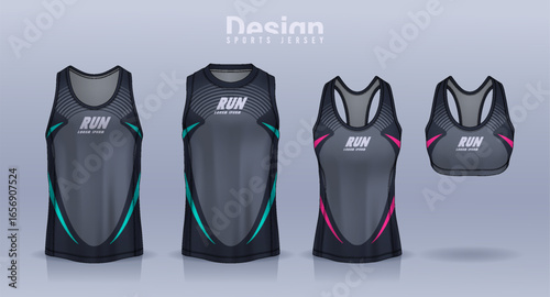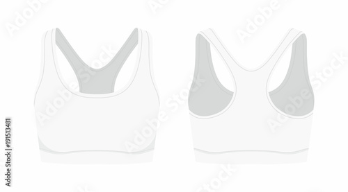 Макет красного женского спортивного бюстгальтера или укороченного топа и шорт, векторная иллюстрация, вид спереди, сзади и сбоку. Мода на спортивную одежду, шаблон тренировочной одежды.