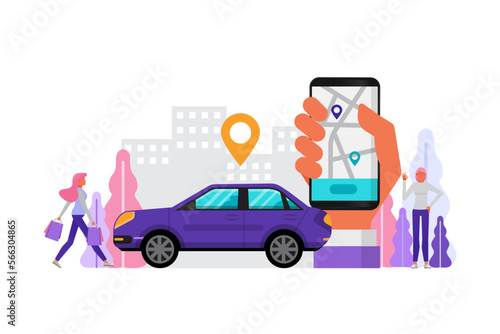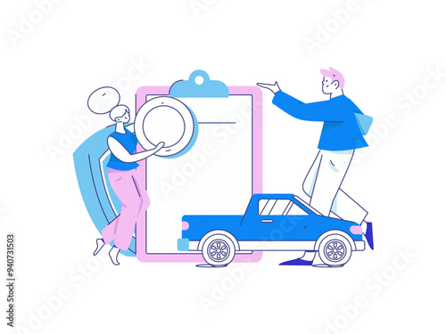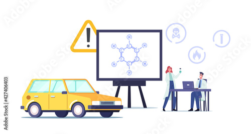 Нефтяная станция с мужскими и женскими персонажами, векторная иллюстрация. Концепция заправки автомобиля на заправочной станции для веб-баннера, страницы веб-сайта и т.д.