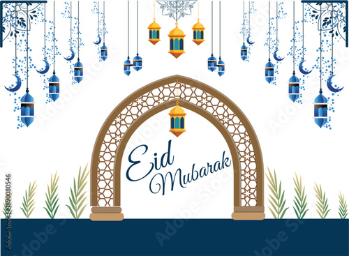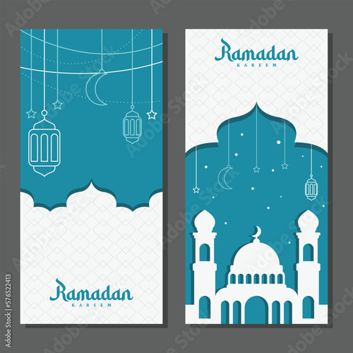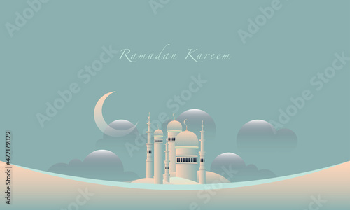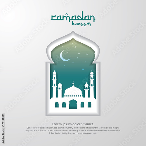 Рамадан Карим 3d вектор. Религиозный фон, вырезанный из бумаги, с исламской мечетью, символом звезды, луны и полумесяца. Декоративный узор к арабскому религиозному празднику в ремесленном стиле