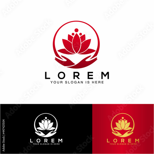 Религиозное происхождение. Силуэт Будды и украшение в виде цветка лотоса. Иллюстрация шаблона поздравительной открытки ко дню Святого Весака или плаката в стиле вырезанного из бумаги художественного ремесла. Религиозный уклад, индуизм