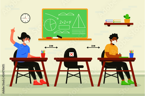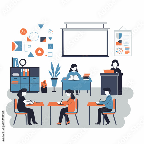 Преподавание из дома, векторная плоская иллюстрация. Онлайн-образование, электронное обучение, дистанционное обучение, пребывание дома в карантине, самоизоляция, профилактические меры социального дистанцирования в связи с пандемией коронавируса.